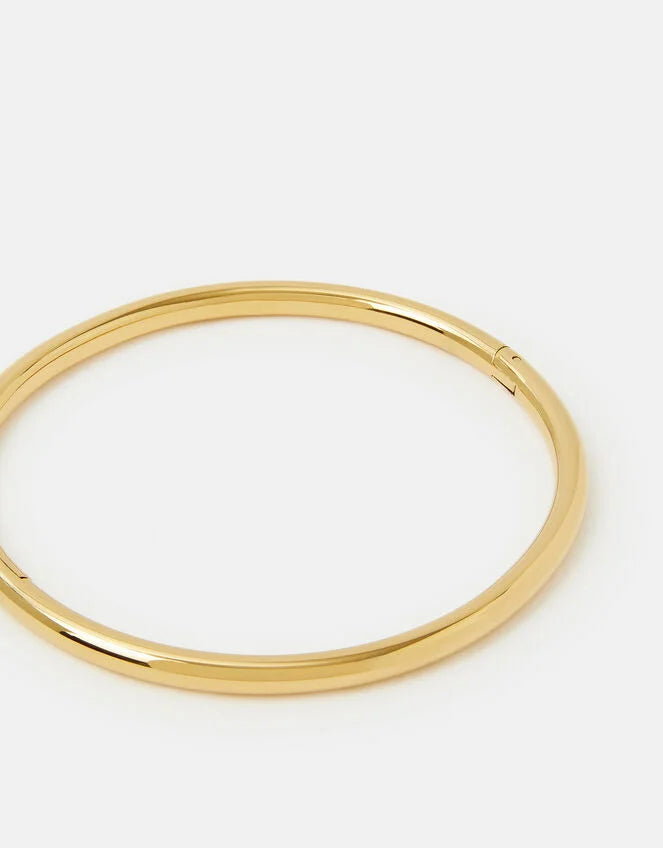Simple styles for your everyday. Made from durable stainless steel in a gold-tone finish, this bangle is designed with a clasp closure for easy styling.