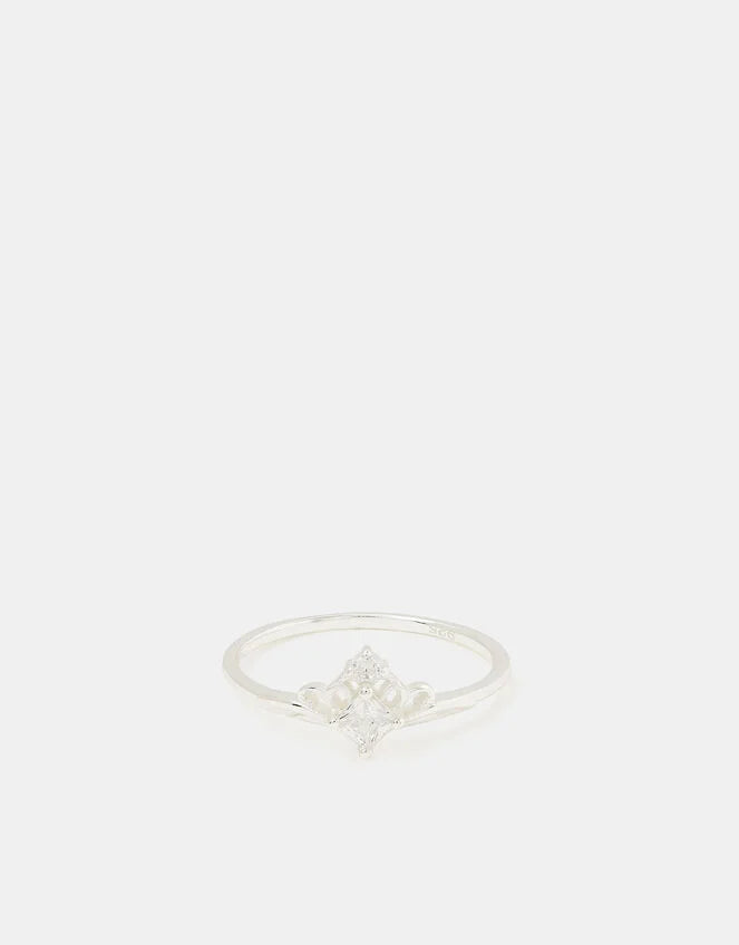 Designed with a simple band crafted from 925 sterling silver, this ring is encrusted with cubic zirconia stones in a dreamy ocean blue hue.